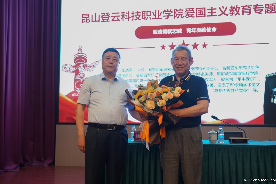 报告结束后,马长世为张战平献花,赞许他是真正的英雄,广大青年学生要以张大校为榜样,将爱国主义精神转化为具体的行动,始终坚守初心。