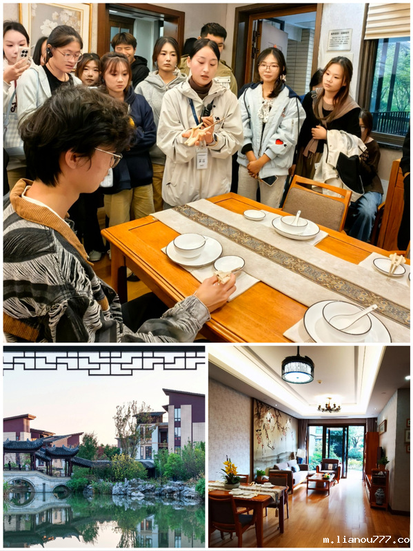 随后,学生们参观了多个特色区域:在著名长者摄影展区,墙上整齐陈列着退休教授、艺术家等长者的照片,或记录他们创作时的专注神情,或展现日常生活的悠然姿态,鲜活的画面让学生们直观感受到长者的精神风采;走进乐活社区与养生公寓,智能安防系统、适老化家居设计等细节,生动诠释了科技与养老服务的深度融合,对此,学生更是纷纷争先体验其中乐趣;而小园林的雅致景致,更让大家感受到社区在营造适老环境时对人文意境的追求。