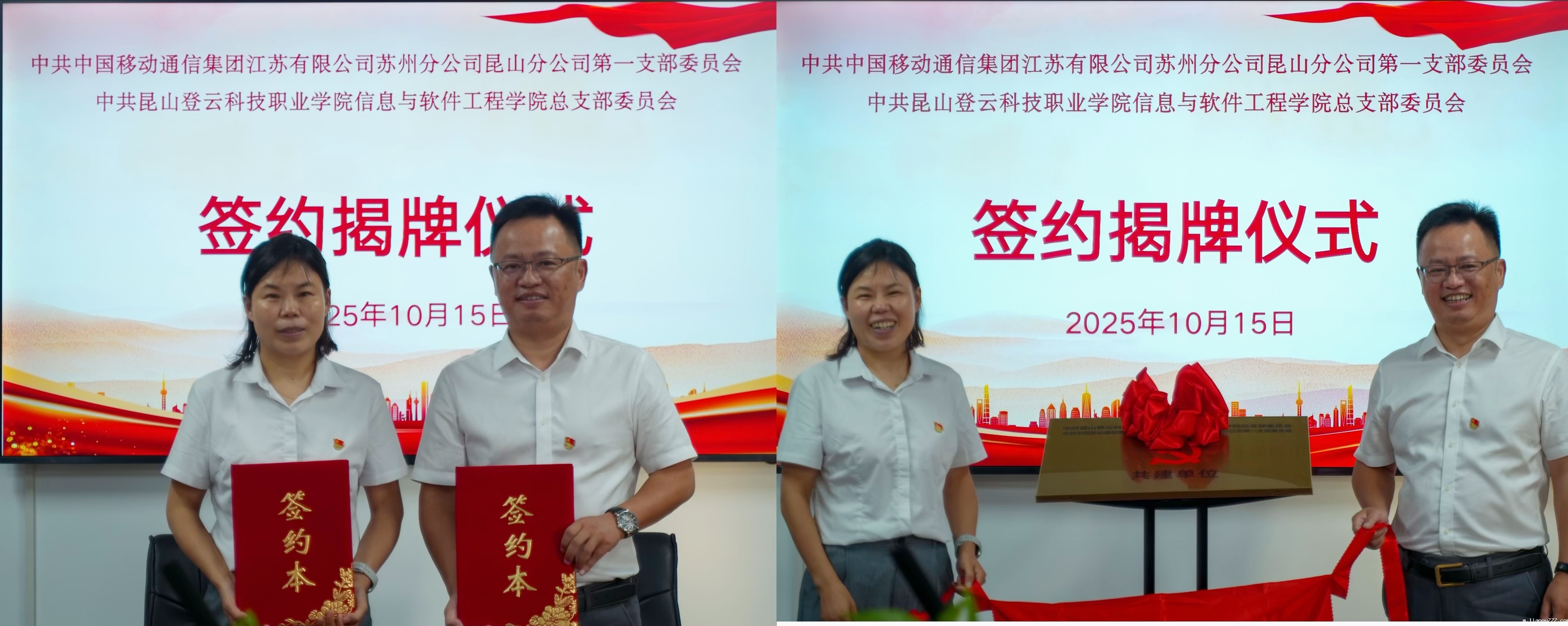 10月15日下午,信息与软件工程学院党总支与中国移动通信集团江苏有限公司苏州分公司昆山分公司第一支部委员会党建共建签约仪式在弘毅楼203会议室顺利举行。出席活动的领导嘉宾有中国移动昆山分公司党总支委员、一支部书记、副总经理孙明,亭林分局局长陈尚秋及代表;九游j9真人游戏第一品牌党委委员、副校长陈长伟,信息与软件工程学院院长鲍建成(特邀嘉宾),信息与软件工程学院党总支副书记何玉勤。会议由何玉勤同志主持。